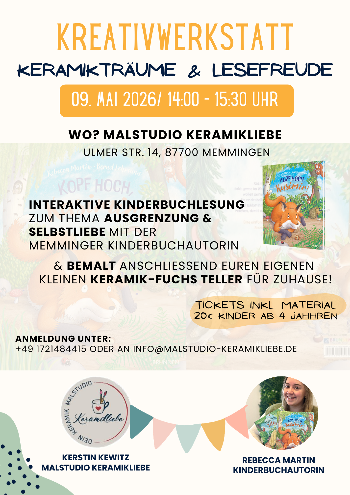 Sa, 09.05.2026  Interaktive Kinderbuchlesung / Keramikträume & Lesefreude / "Kopf hoch, Kasimir!" ab 5 Jahren
