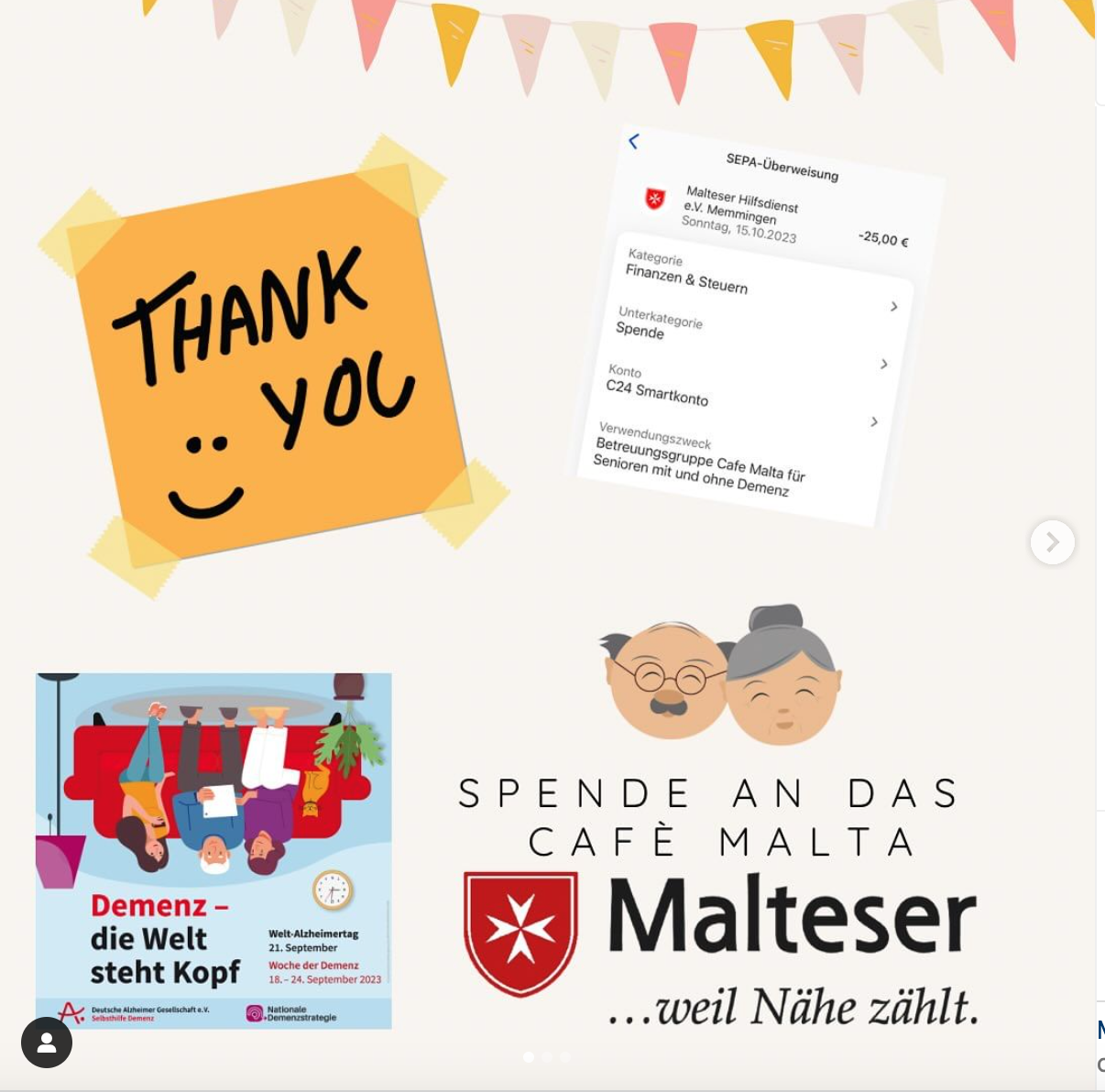 Gestern bzw heute habe ich die Spende an das Café Malta der Malteser @malteser_memmingen überwiesen.