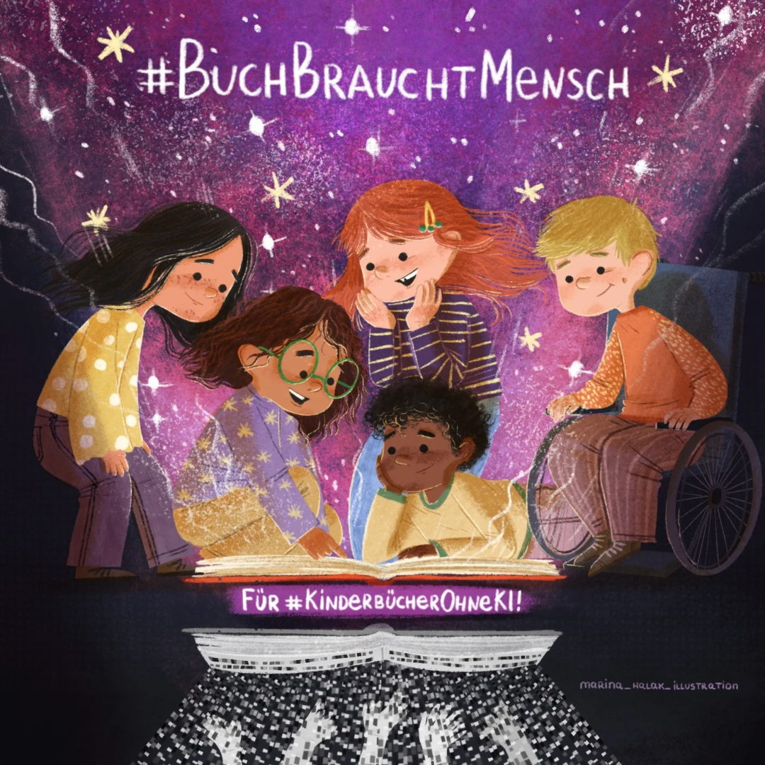 Macht mit, kauft keine KI-generierten Bücher und verbreitet die Aktion unter dem #buchbrauchtmensch
